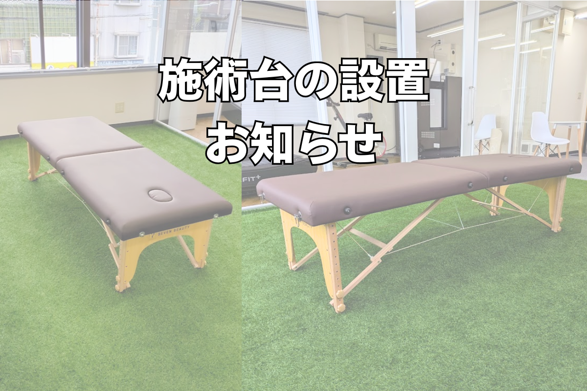 このたび、パーソナルトレーニング&コンディショニング用に 施術台を新たに導入 いたしました。トレーニング前後のストレッチやコンディショニング、ボディケアをより快適に受けていただけます。
