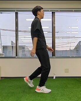 - 踵から接地し、スムーズに体重移動する