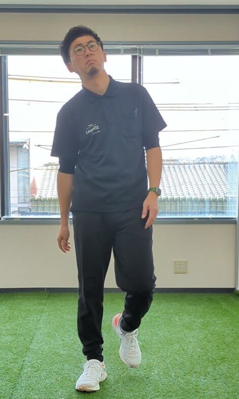 側方への傾きを止めようとして、腰の筋肉に負担が生じます。また、このような姿勢の場合は、脚の筋力や可動域に左右差がある場合が多いです。