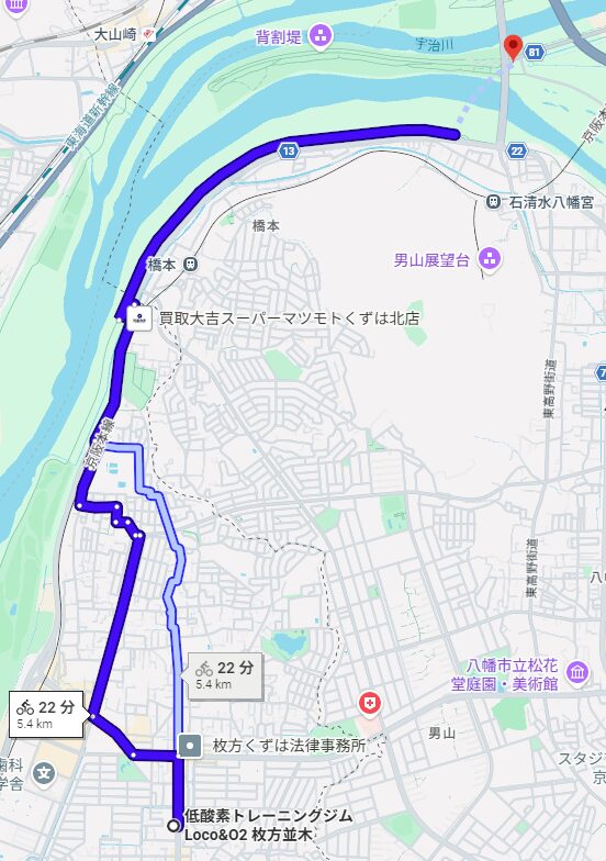 ジムは淀川河川敷に近く、サイクリストに人気のさくらであい館からもアクセスしやすい立地です。
